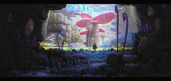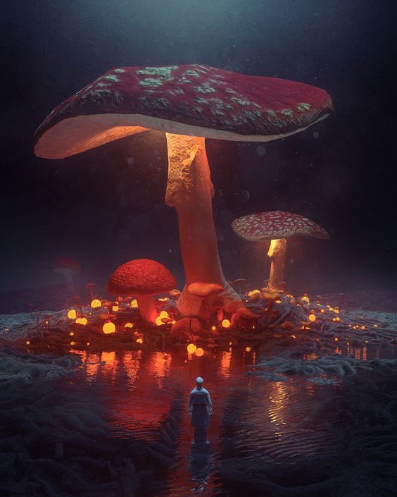 Then I started looking for some reference pictures, I don’t know why I’ve been particularly obsessed with good-looking mushrooms lately, my first project also had elements of mushrooms. In short, I wanted to create a forest full of glowing mushrooms.