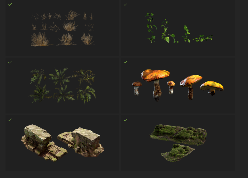 Then I started looking for suitable assets in Quixel Bridge.