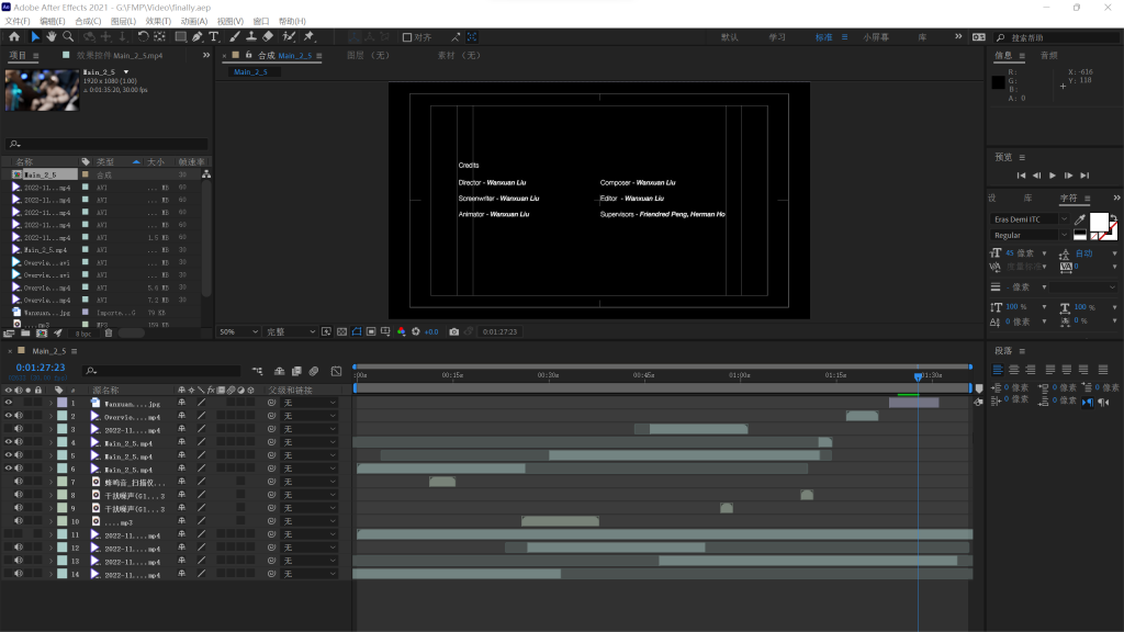 Week8: Editing Wanxuan Liu Posted on 24th November 2022 Posted in Final Major Project & Thesis No Comments I did the effects and connections in PR first and then went into AE for the soundtrack.